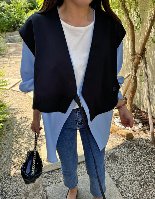라운드넥 페이크 가디건
