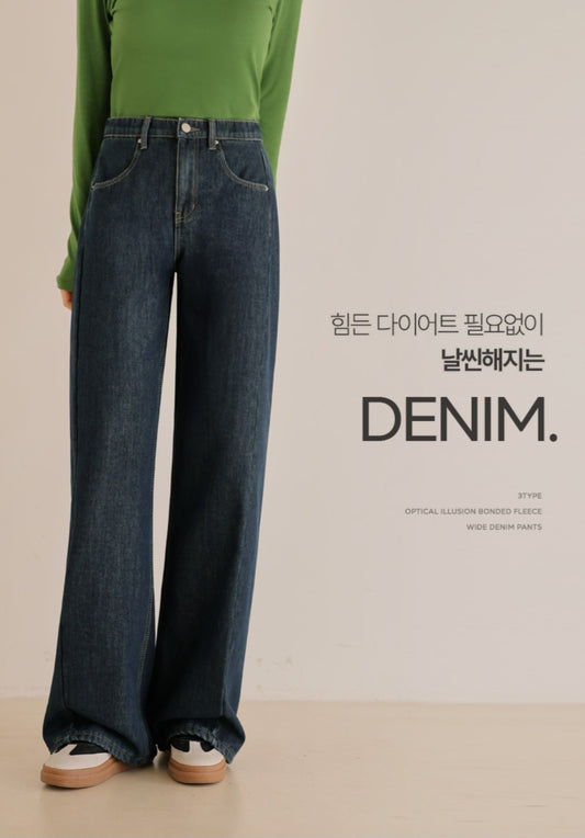 (NEW) 폴딩 코튼 와이드 청바지 S-2XL 3단기장