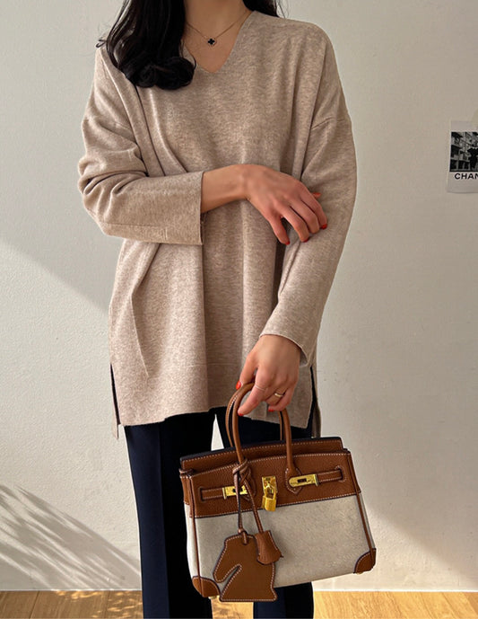 브이넥 루즈핏 롱니트