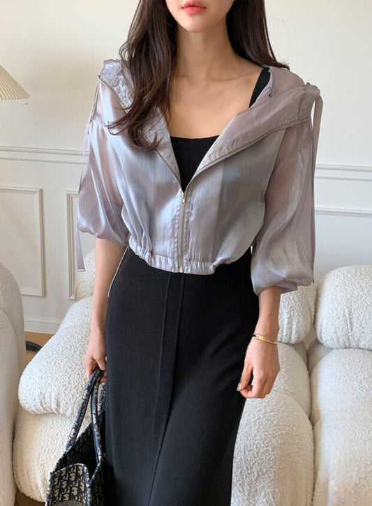 글로시 숏 바람막이 점퍼