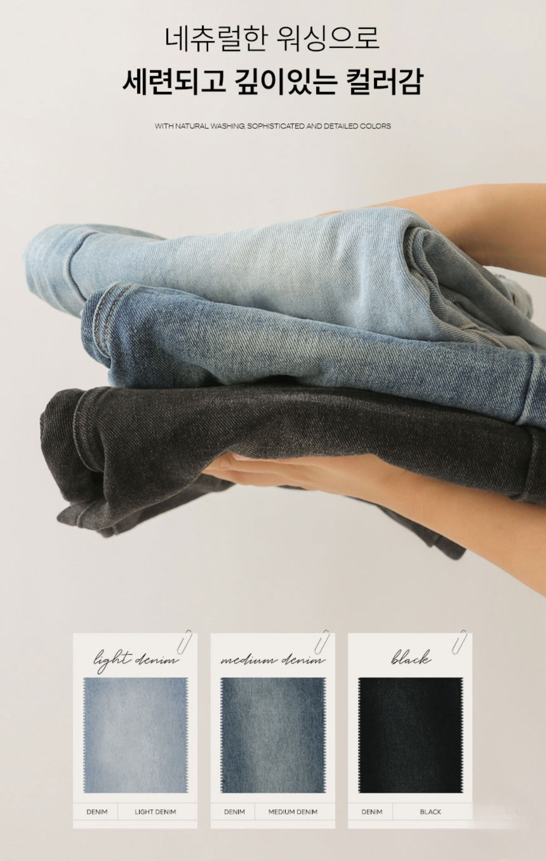 3가지 컬러구성에 세련된 워싱으로