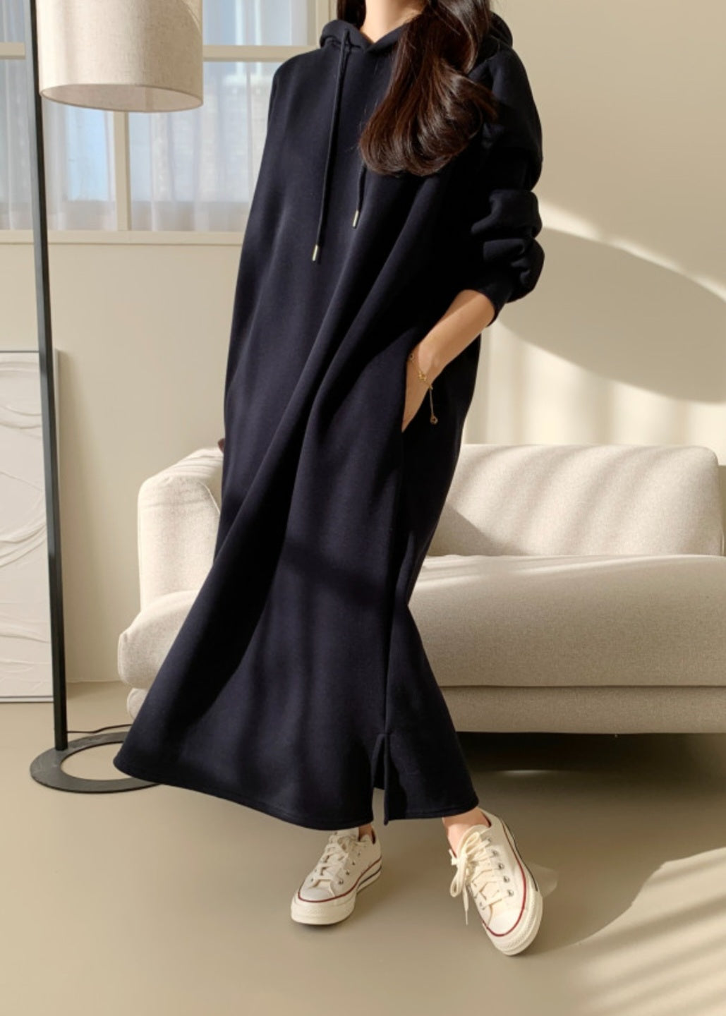 후드 롱 원피스