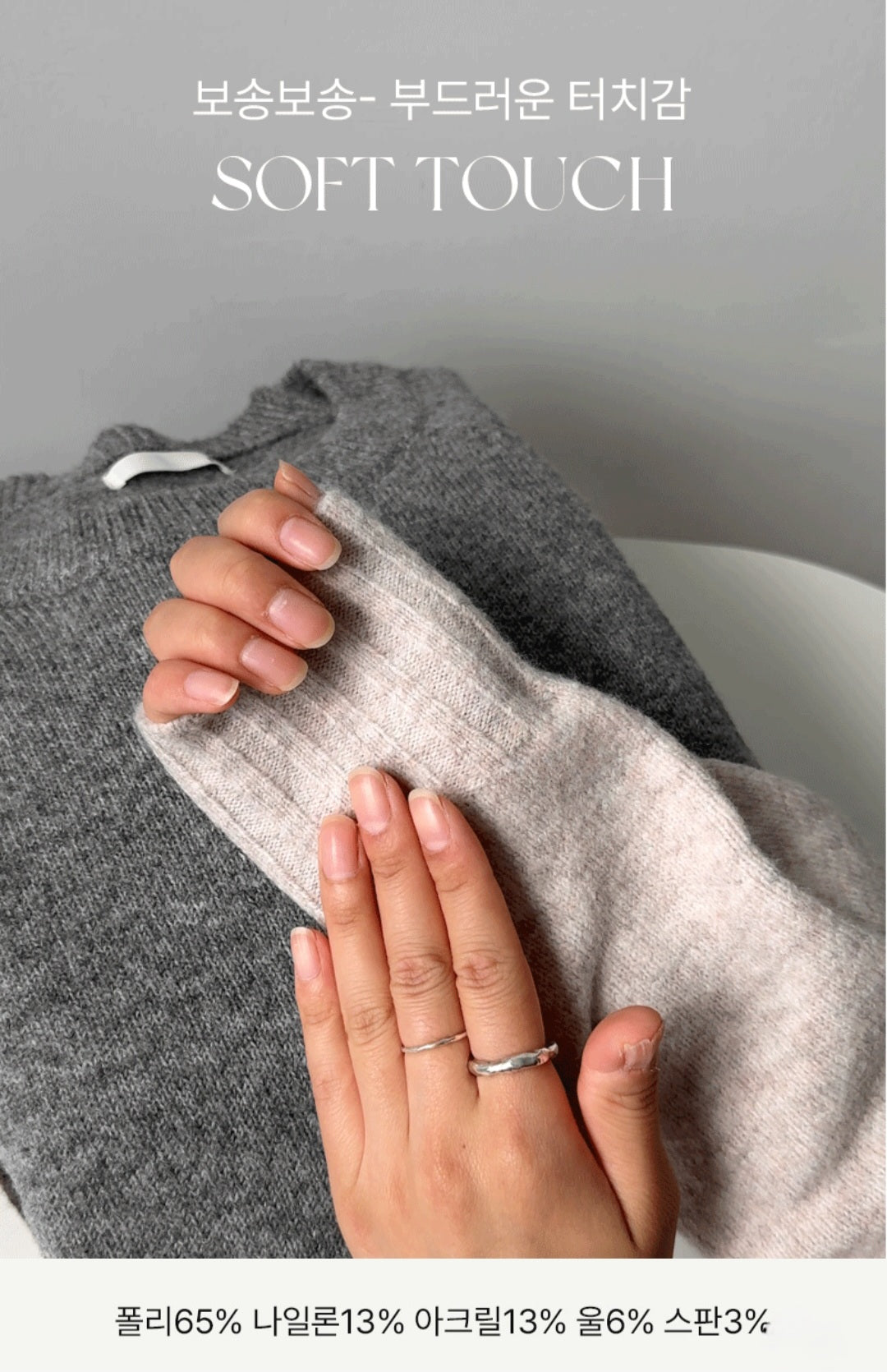 포근하게 감기는 터치감에 안정감 있는 라운드넥,