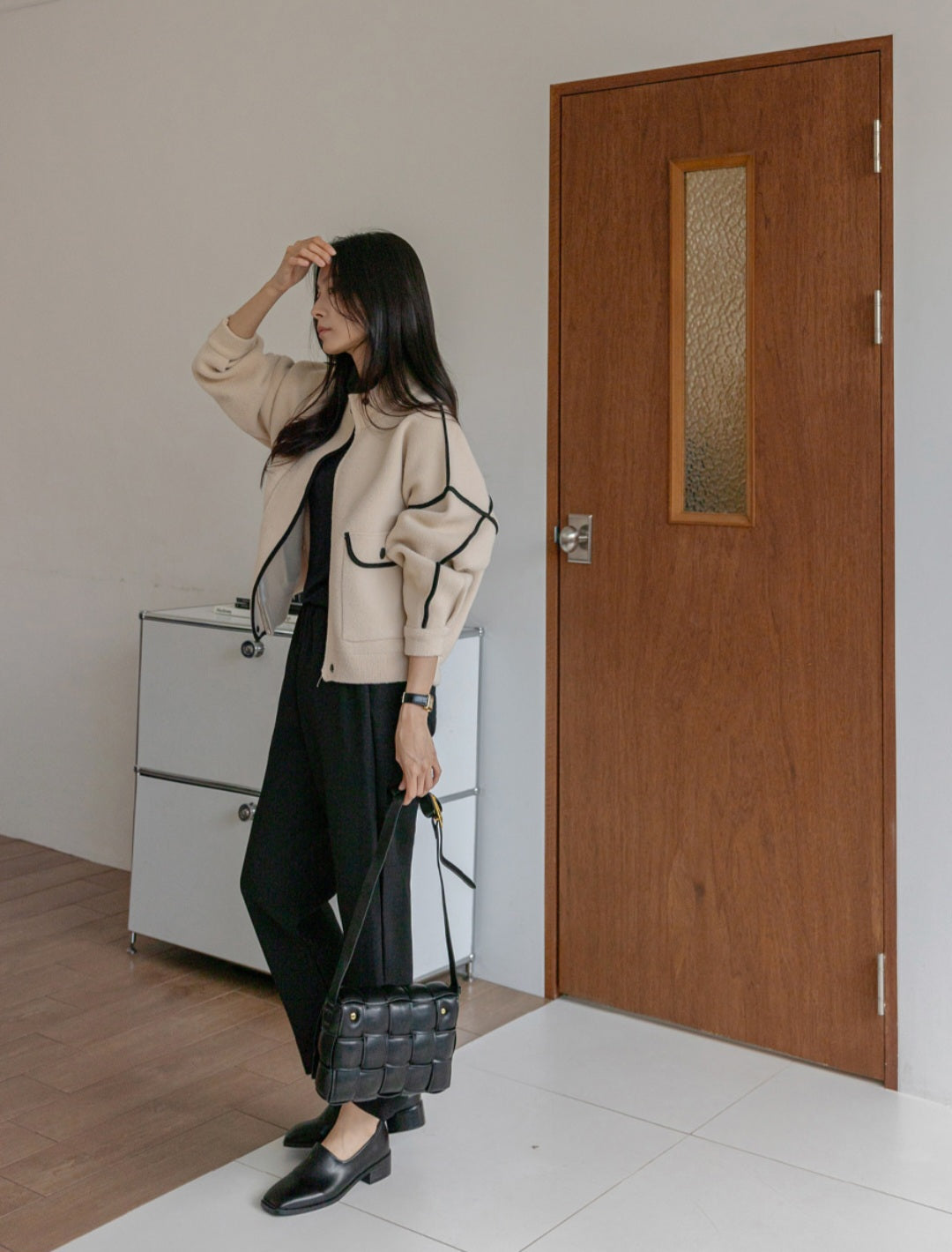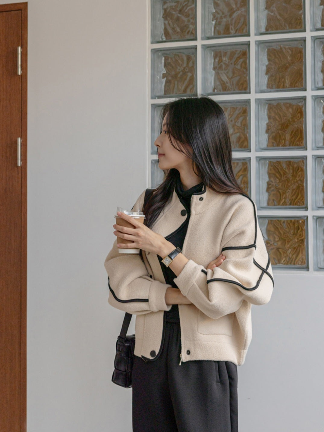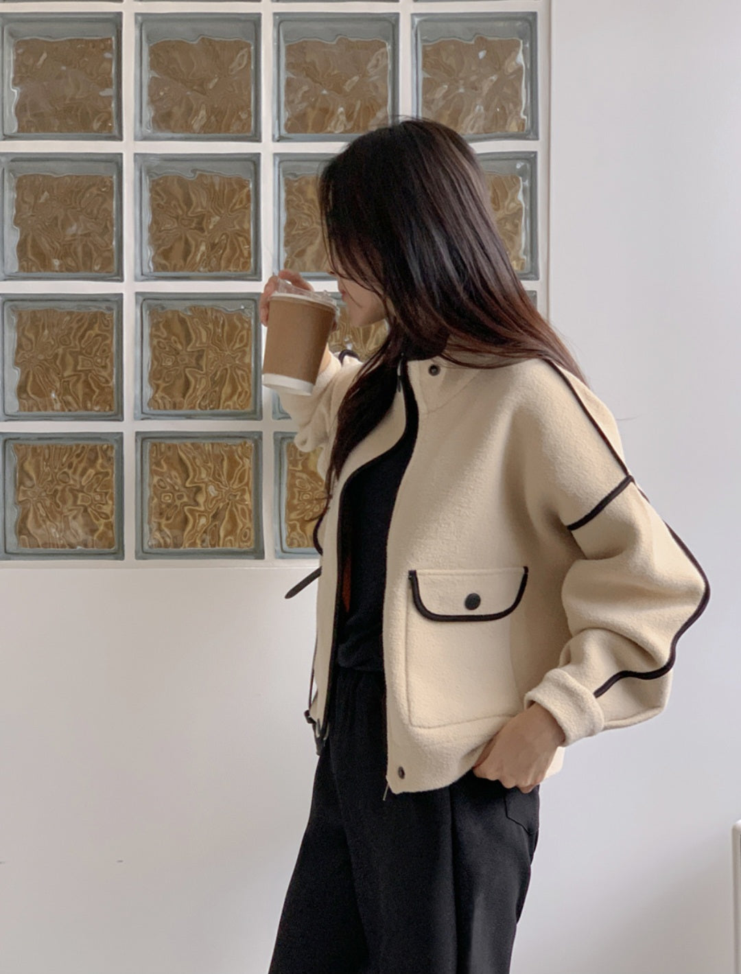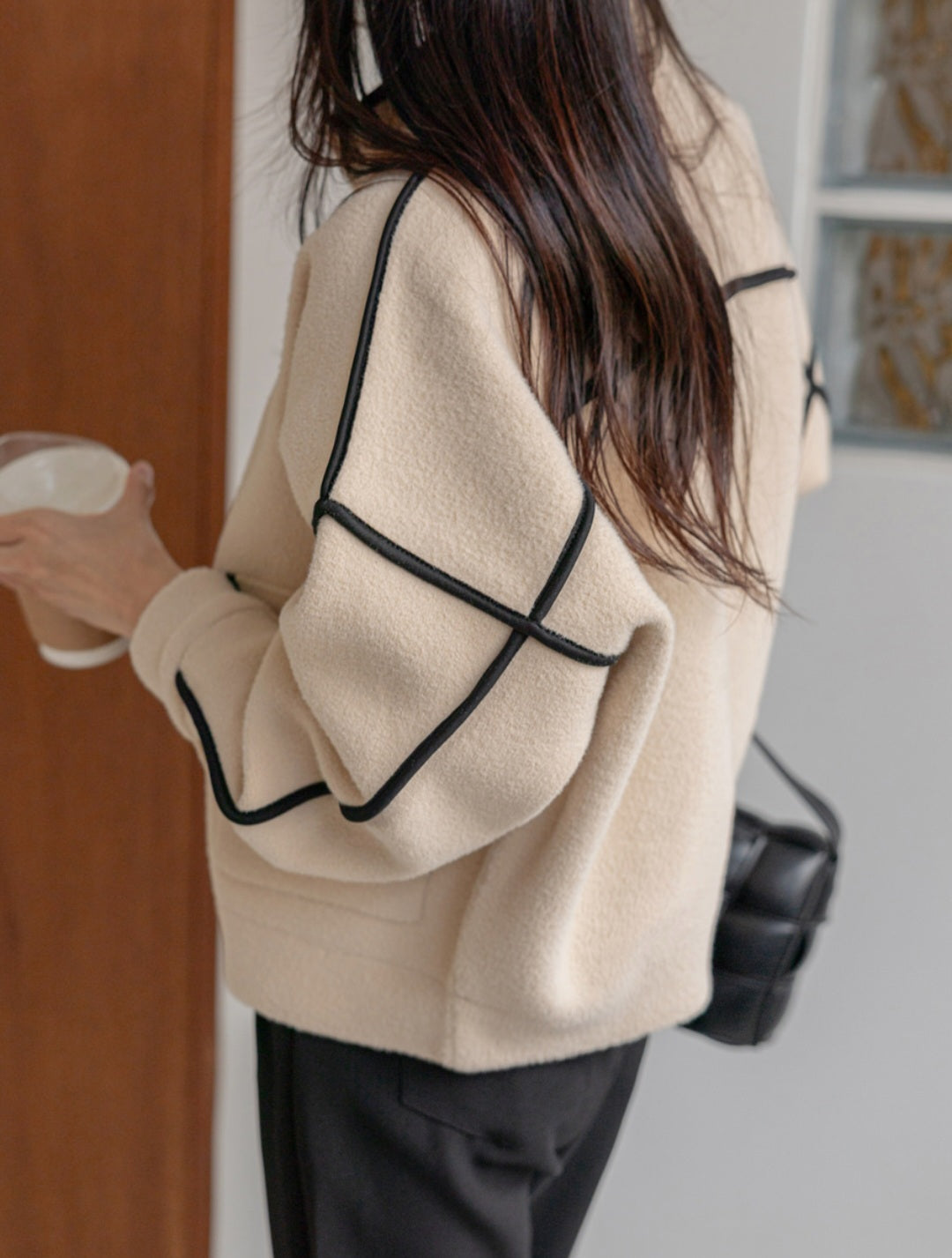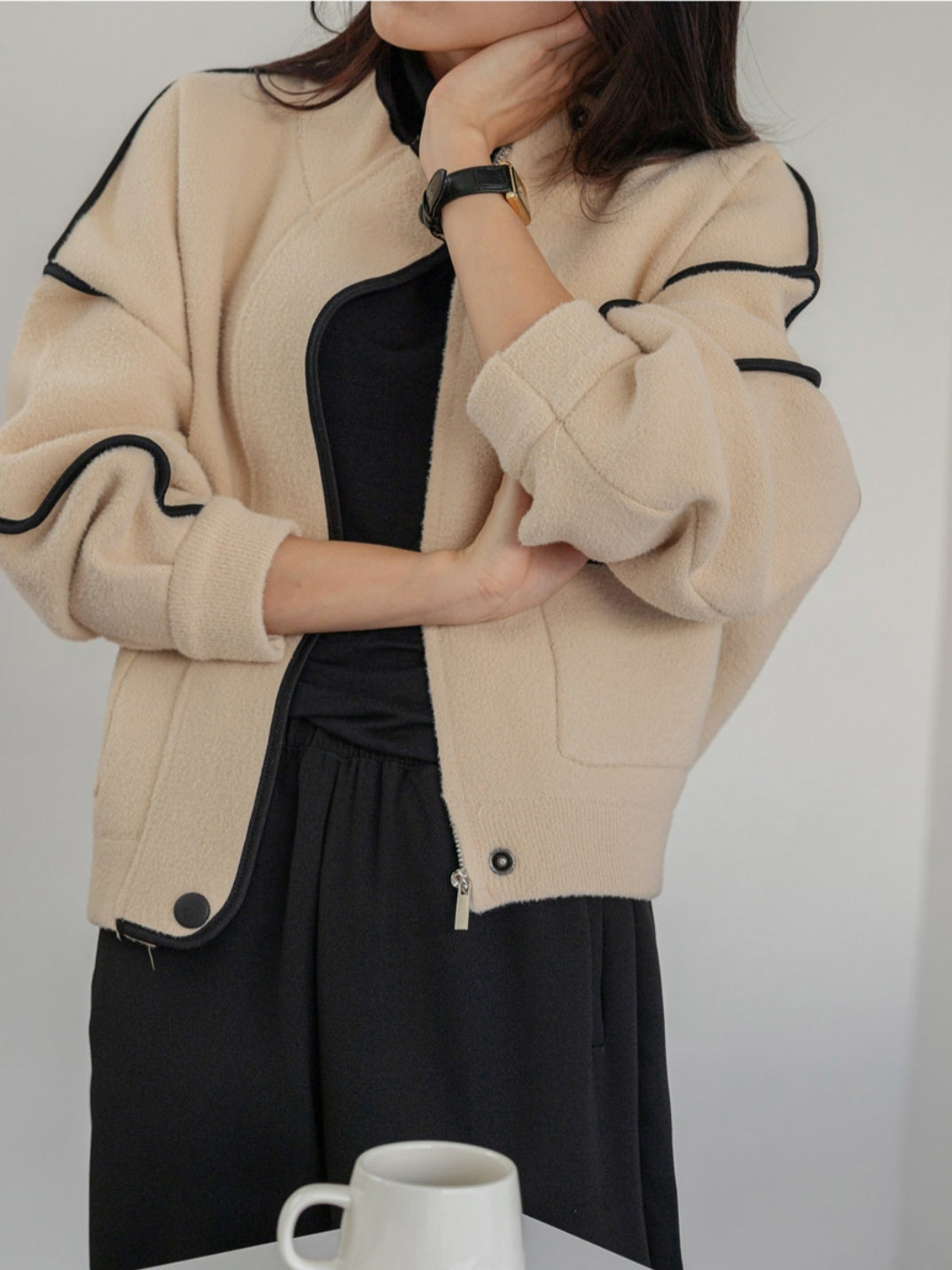 깔끔하고 세련된 배색라인 포인트 니트자켓 소개해요
