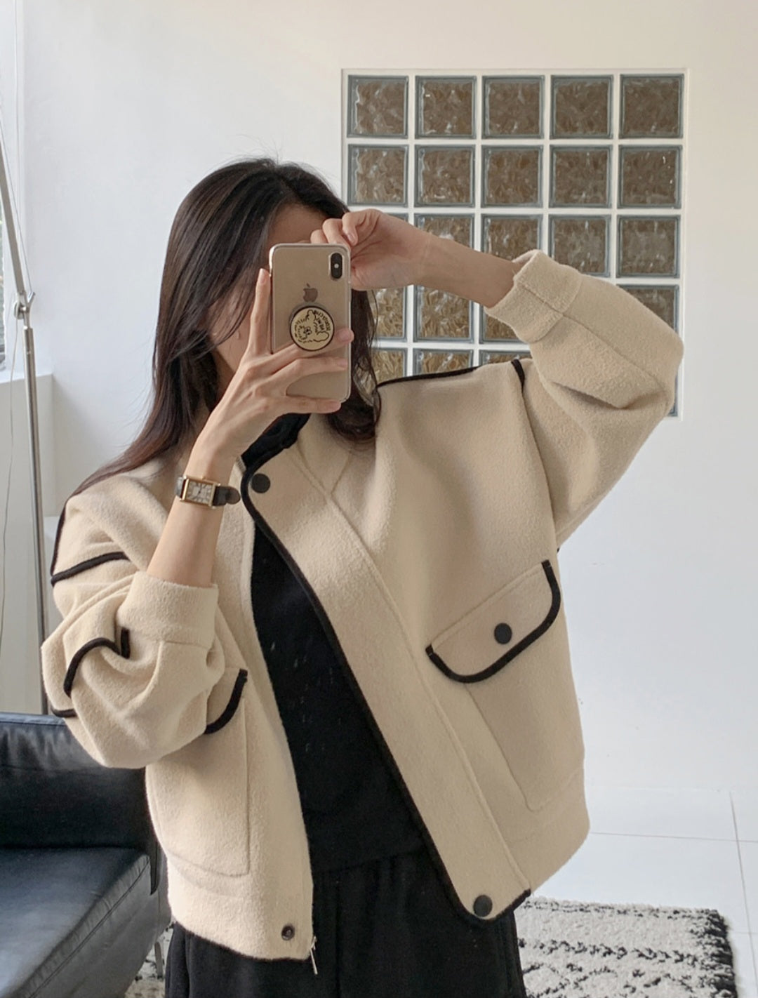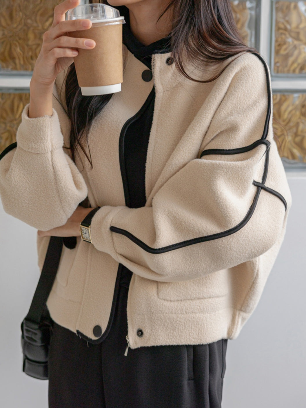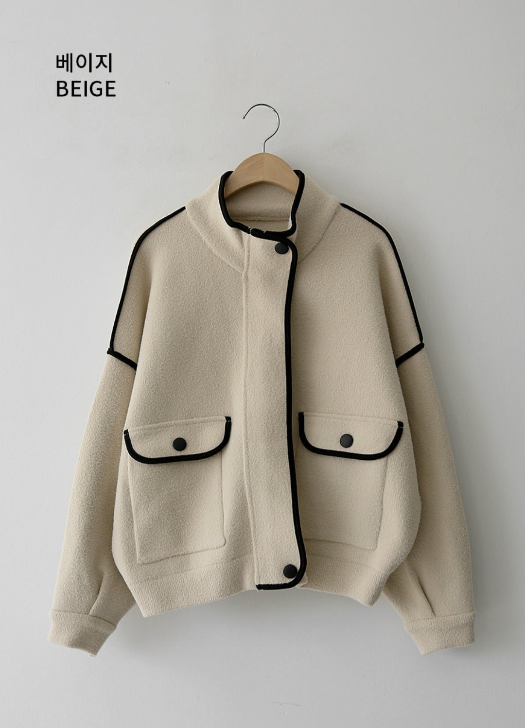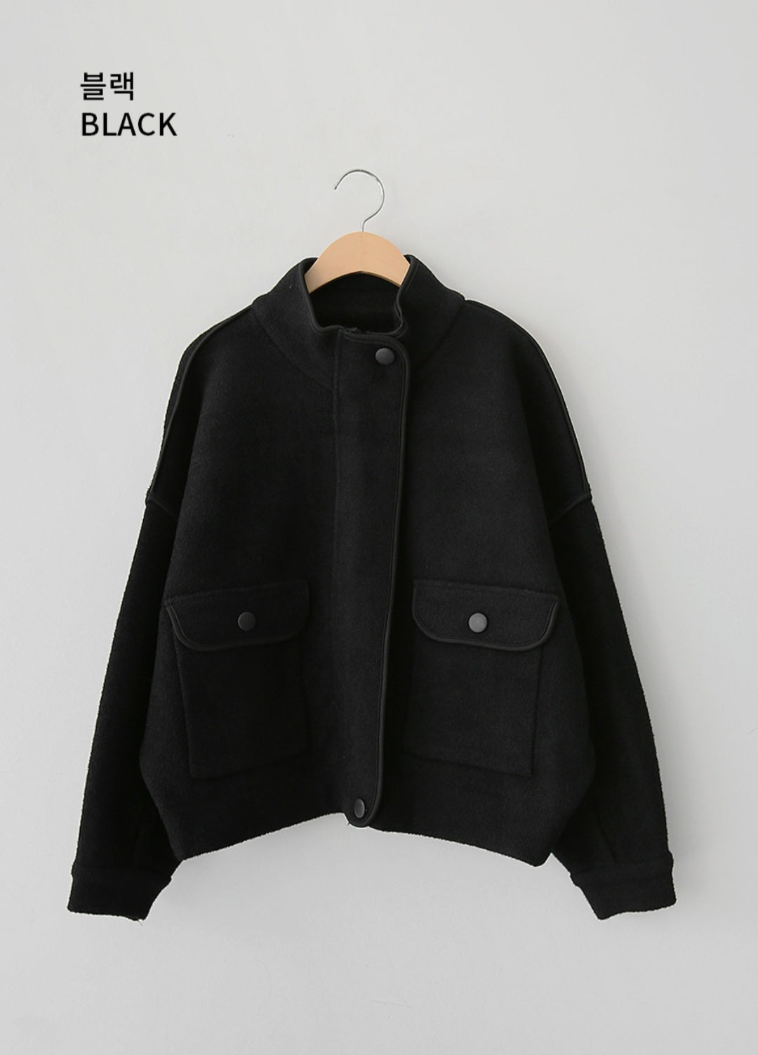 하이넥 라인에 똑딱 버튼으로