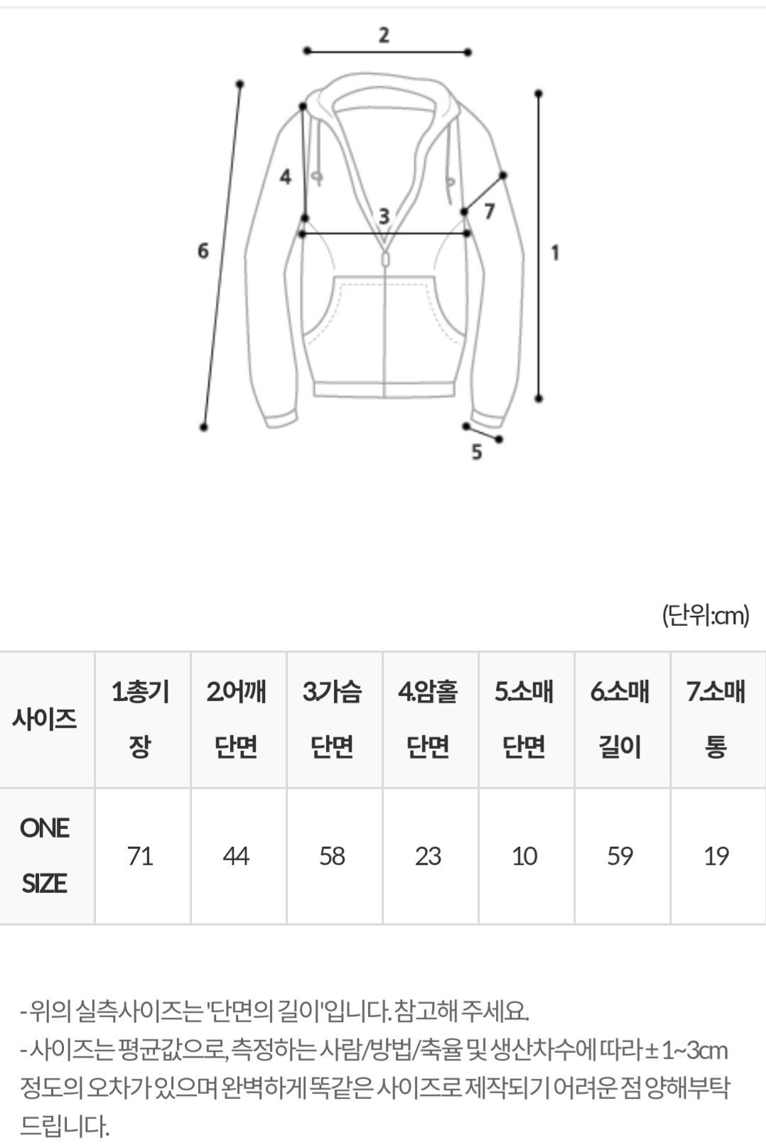 총기장 71ㅣ어깨 44ㅣ가슴 58ㅣ소매 59