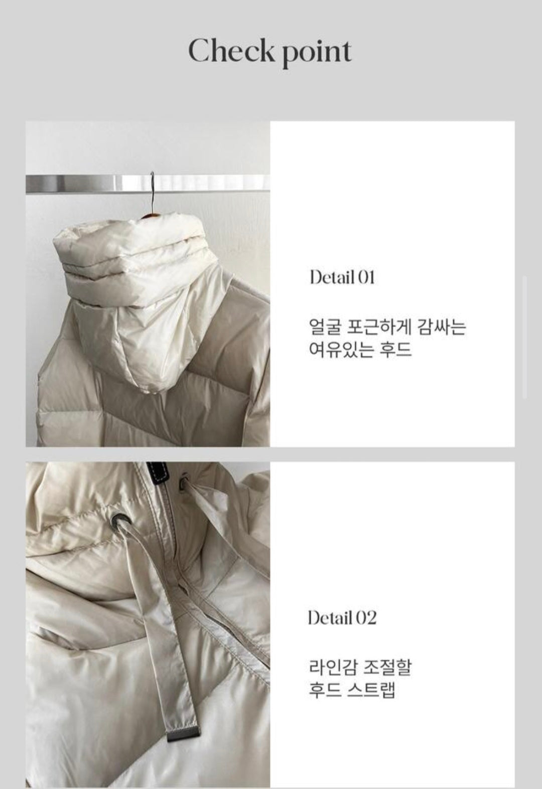 ✔️덕다운 충전재 특성상 충전재 냄새가 날 수 있으며,